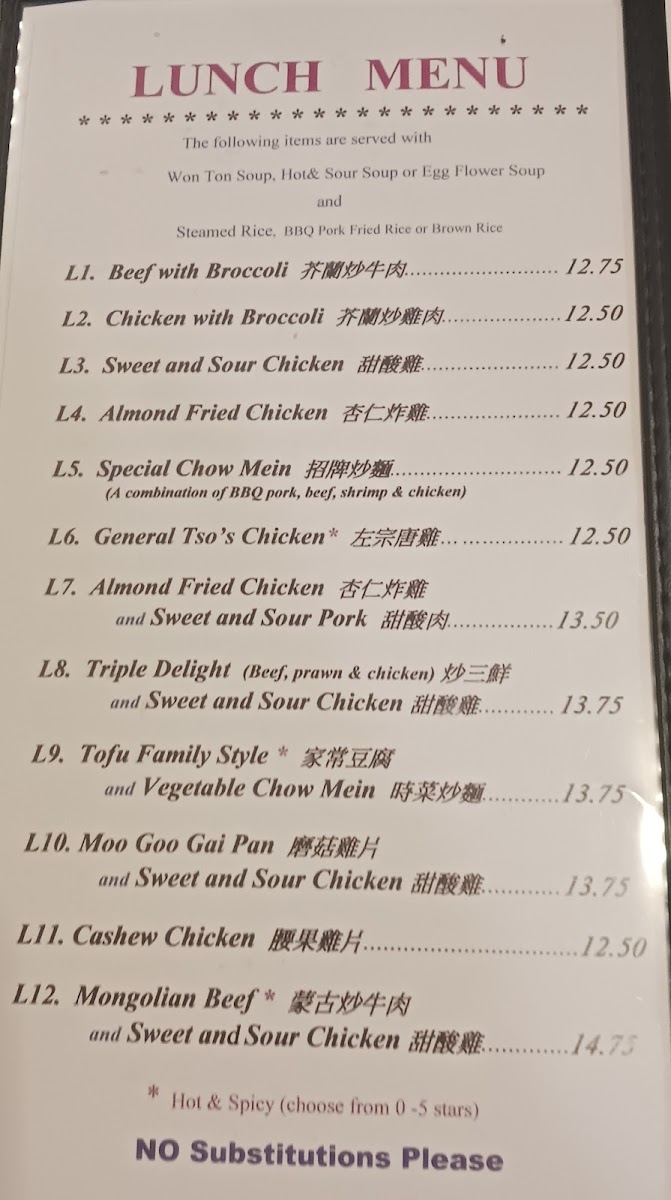 There’s also a thoughtful mix of traditional favorites alongside some regional specialties, making it easy to tailor your meal to the moment—whether you’re craving something familiar or something with a bit of spice. Side orders including steamed rice, crispy noodles, and house-made sauces help round out the experience, complementing the main dishes in a simple yet complete way.